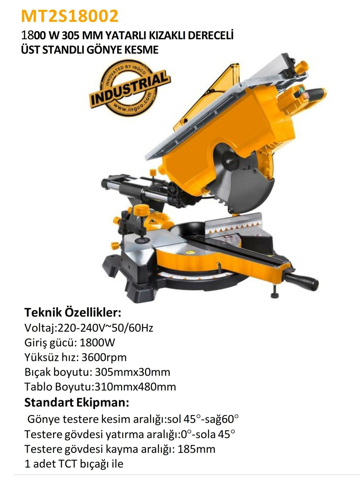 1800W ÜST STANDLI GÖNYE TESTERE 305MM